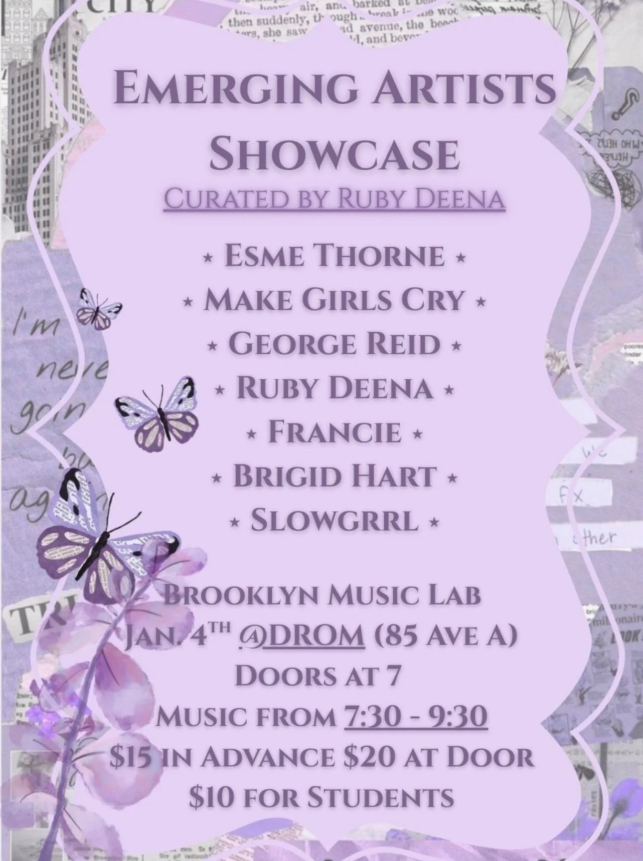 JAN 4 @ DROM - Emerging Artist Showcase - curated by Ruby Deena 7:30PM